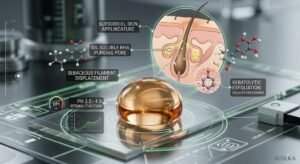 To objectively comprehend the clinical superiority of this specific chemical synergy, formulation engineers must deeply analyze the molecular geometry and solubility parameters of the active compounds. Salicylic Acid is a Beta Hydroxy Acid (BHA) characterized by its inherently lipophilic (oil-soluble) molecular structure. Unlike Alpha Hydroxy Acids (AHAs), which are strictly hydrophilic (water-soluble) and confined to superficial surface exfoliation, a meticulously formulated acne fighting ingredients serum utilizing BHA physically bypasses the aqueous surface layers. It penetrates directly into the lipid-rich environment of the sebaceous gland, locating the precise anatomical site of the acne vulgaris infection.